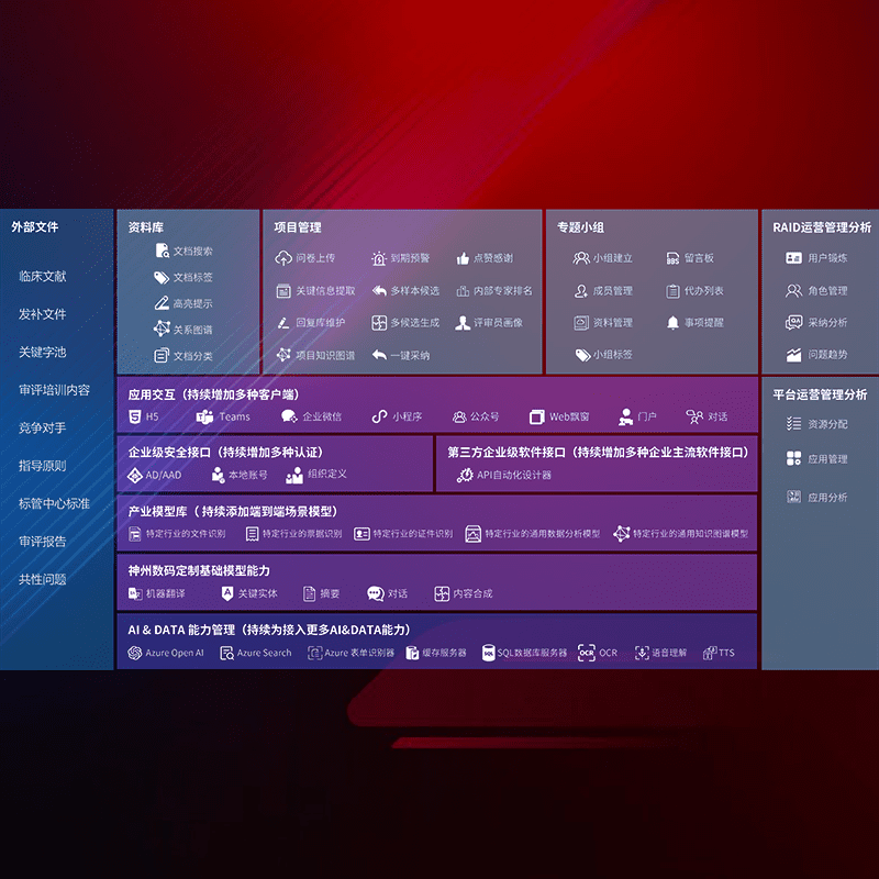 医疗器械产品上市前,,,,要熟悉严格与繁复评审标准,,整理分析监管机构指导文件中的海量信息。。。企业急需一个智能化解决方案,,,,提升知识管理效率,,,,提高评审通过率,,,以提升其市场竞争力。。。
